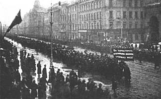С этих революций в России началась гражданская война, которая закончилась лишь в 1922 году. На полях сражений гражданской войны сошлись многие противостоявшие друг другу силы: представители различных политических течений России, стремившиеся подавить революцию, а также боровшиеся друг против друга и против различных участников гражданской войны войска великих держав и некоторых малых государств. Февральская революция 1917 года расшатала традиционную систему власти, но не спровоцировала никаких серьёзных внутренних сражений, пока генерал Лавр Корнилов не начал в сентябре поддержанное армейскими частями наступление на Петроград. Временное правительство вооружило рабочих, и им удалось остановить эту попытку государственного переворота. Октябрьская революция, совершённая радикальными социалистическими партиями шестого-седьмого ноября 1917 года отняла власть у Временного правительства. Новое советское правительство под руководством В.И. Ленина воспрепятствовало деятельности избранного народом Учредительного собрания |